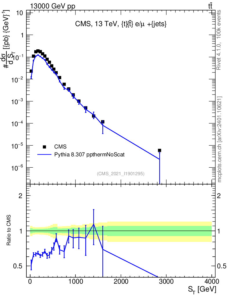 Lines: data, pythia8 8.307 ppthermNoScat |