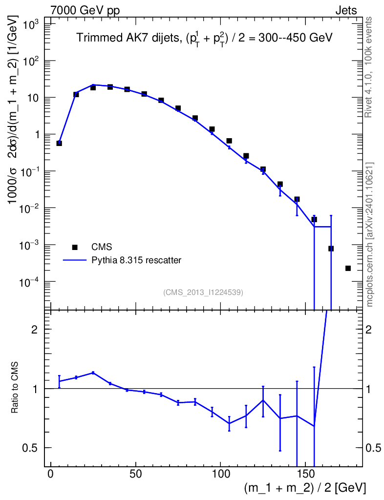Lines: data, pythia8 8.315 rescatter |