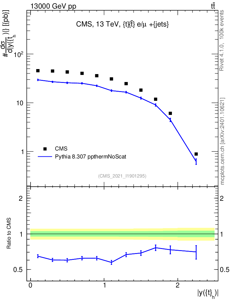 Lines: data, pythia8 8.307 ppthermNoScat |