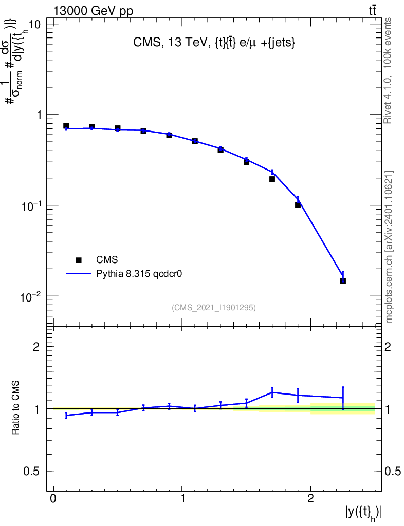 Lines: data, pythia8 8.315 qcdcr0 |