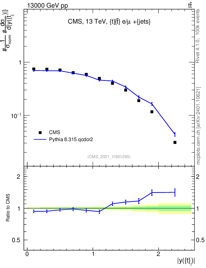 Lines: data, pythia8 8.315 qcdcr2 |