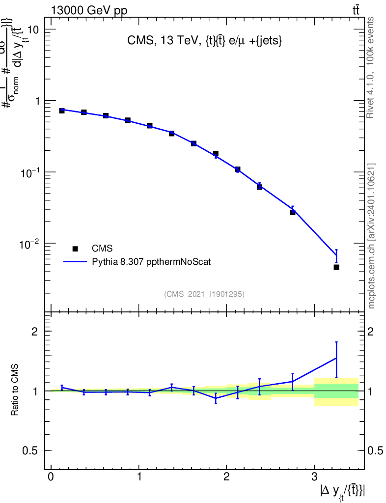 Lines: data, pythia8 8.307 ppthermNoScat |