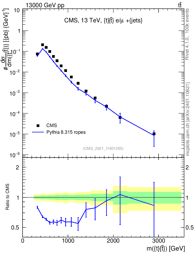 Lines: data, pythia8 8.315 ropes |