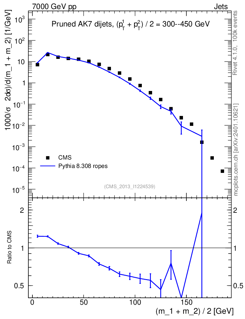 Lines: data, pythia8 8.308 ropes |