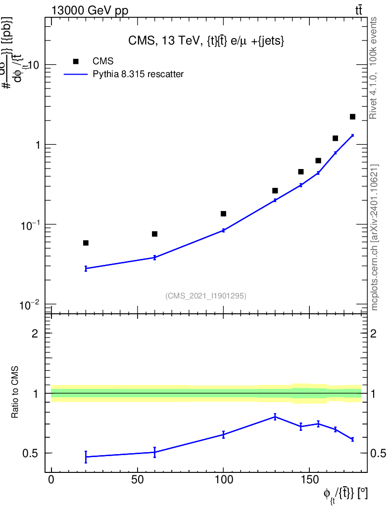 Lines: data, pythia8 8.315 rescatter |