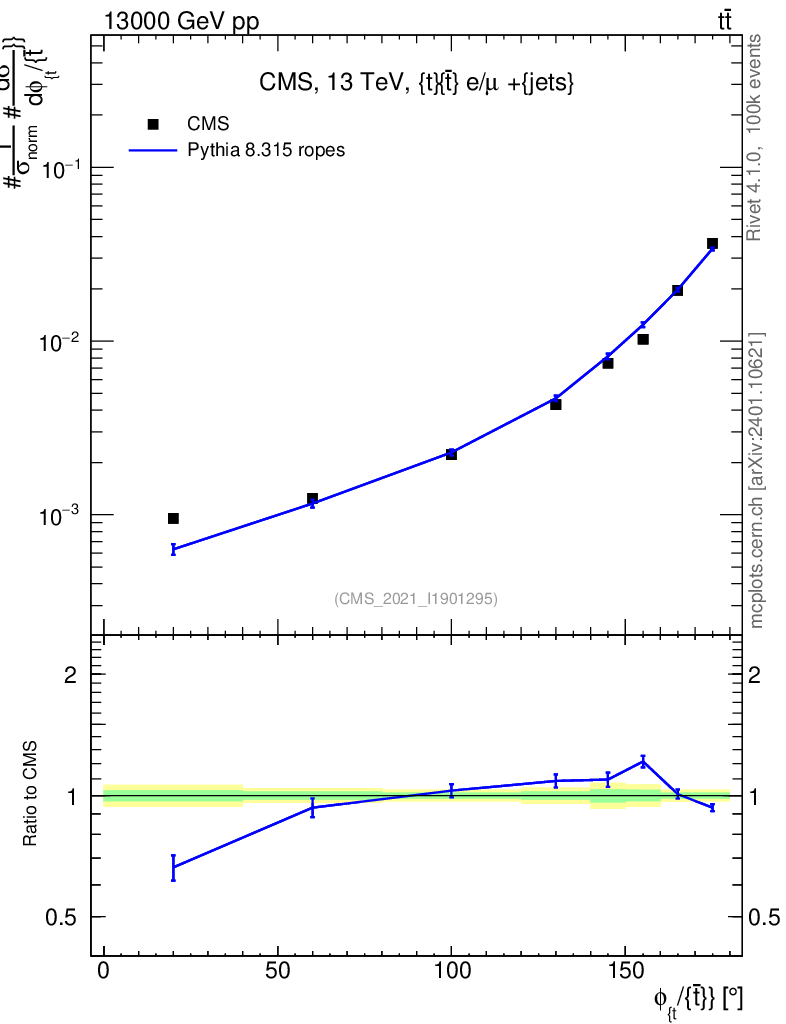 Lines: data, pythia8 8.315 ropes |