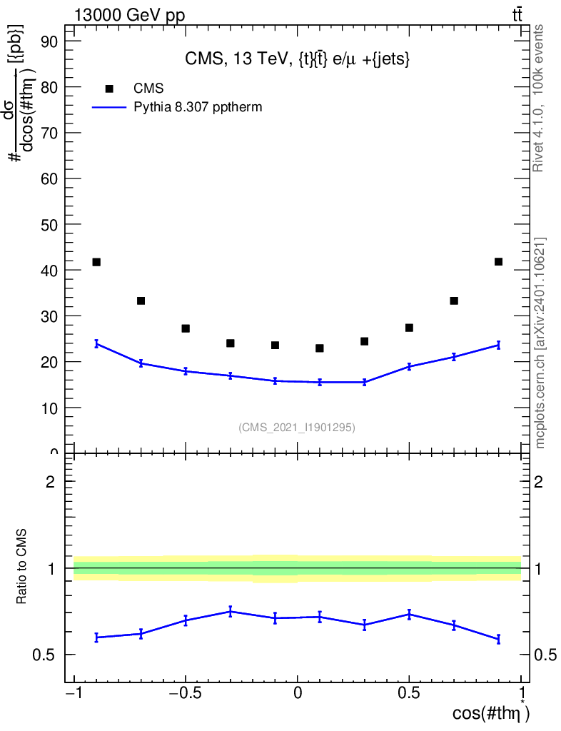 Lines: data, pythia8 8.307 pptherm |