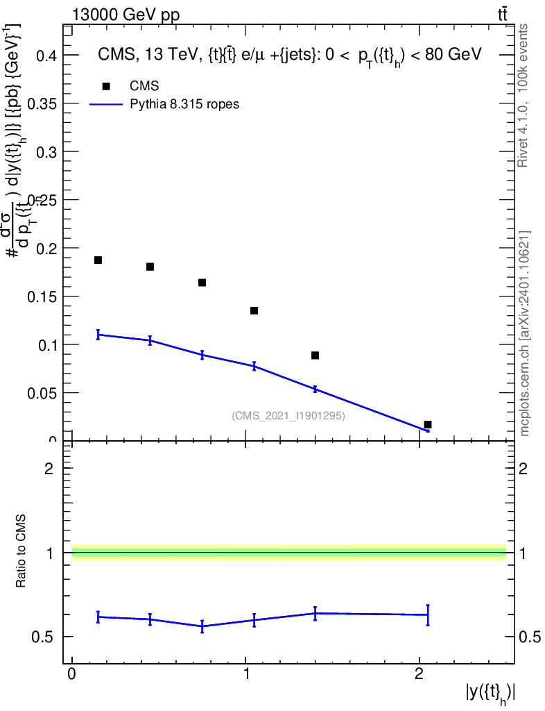 Lines: data, pythia8 8.315 ropes |