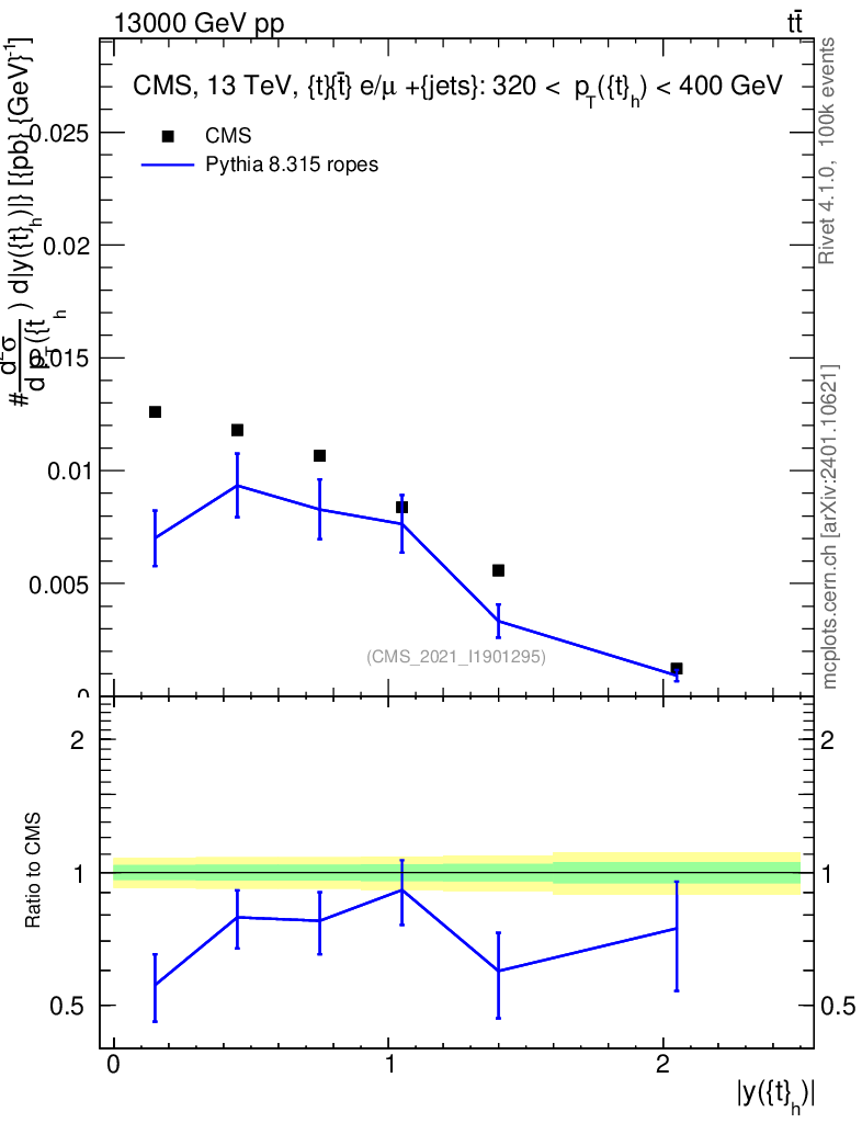 Lines: data, pythia8 8.315 ropes |