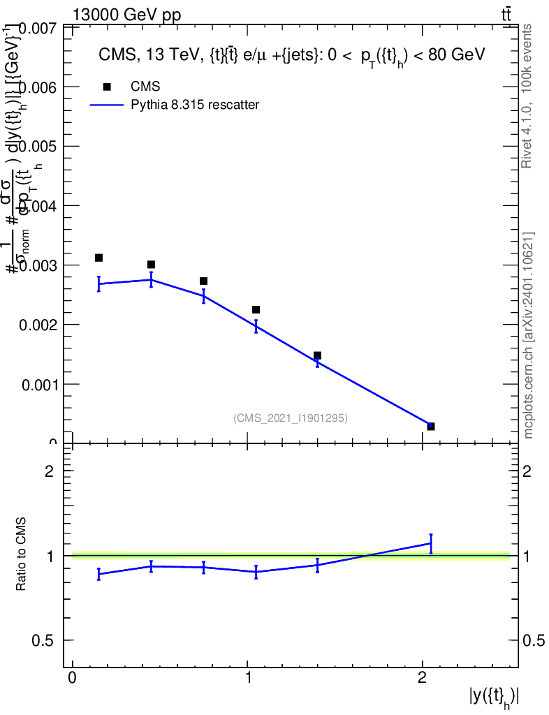 Lines: data, pythia8 8.315 rescatter |