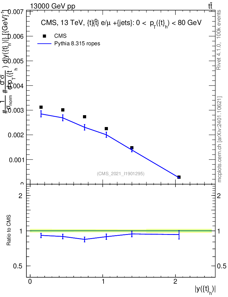 Lines: data, pythia8 8.315 ropes |