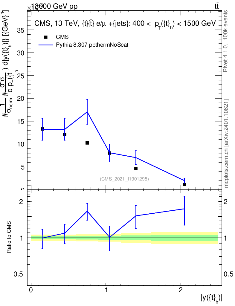 Lines: data, pythia8 8.307 ppthermNoScat |