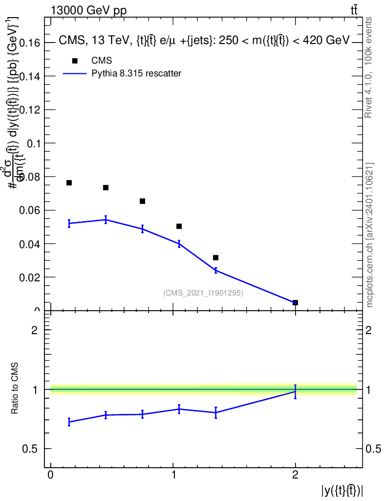 Lines: data, pythia8 8.315 rescatter |