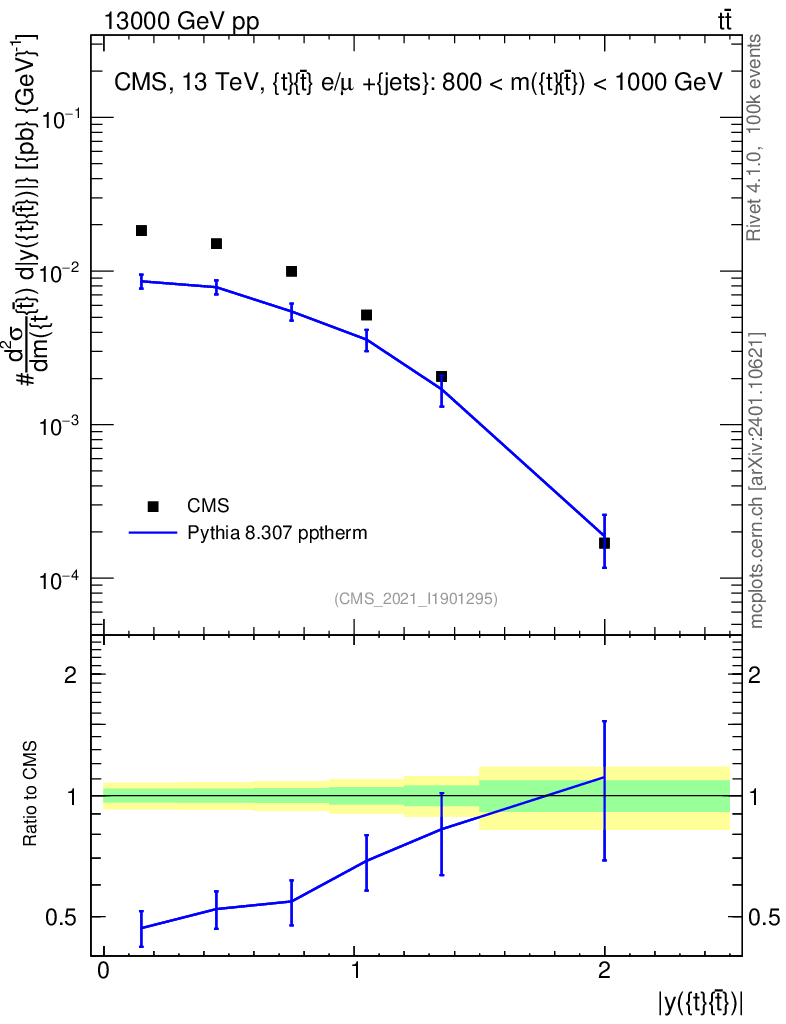 Lines: data, pythia8 8.307 pptherm |