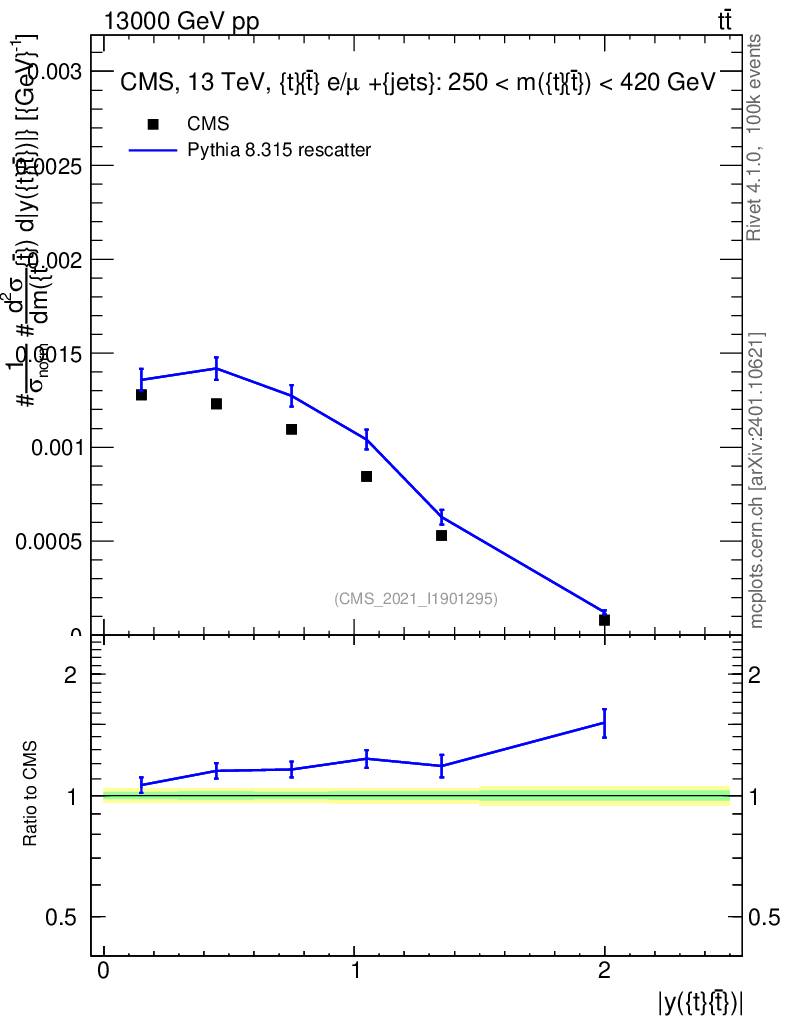 Lines: data, pythia8 8.315 rescatter |
