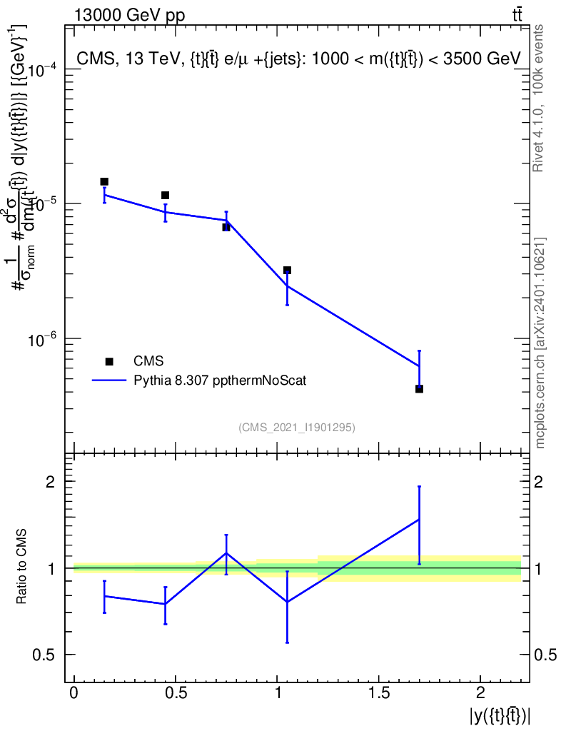 Lines: data, pythia8 8.307 ppthermNoScat |