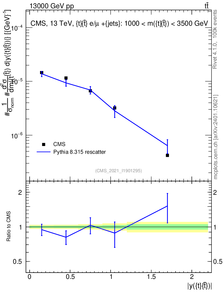 Lines: data, pythia8 8.315 rescatter |