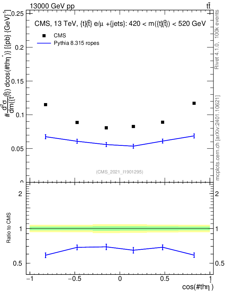 Lines: data, pythia8 8.315 ropes |