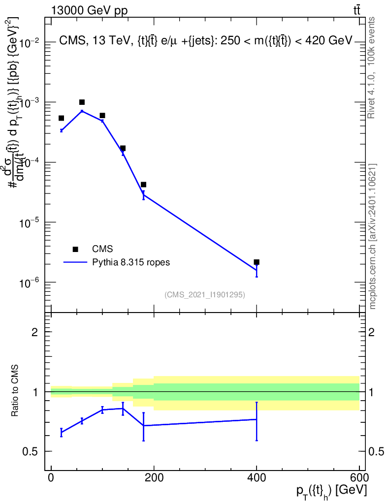 Lines: data, pythia8 8.315 ropes |