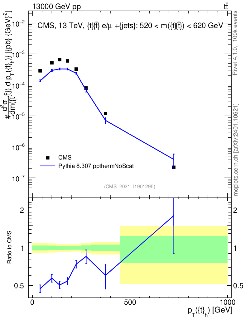 Lines: data, pythia8 8.307 ppthermNoScat |
