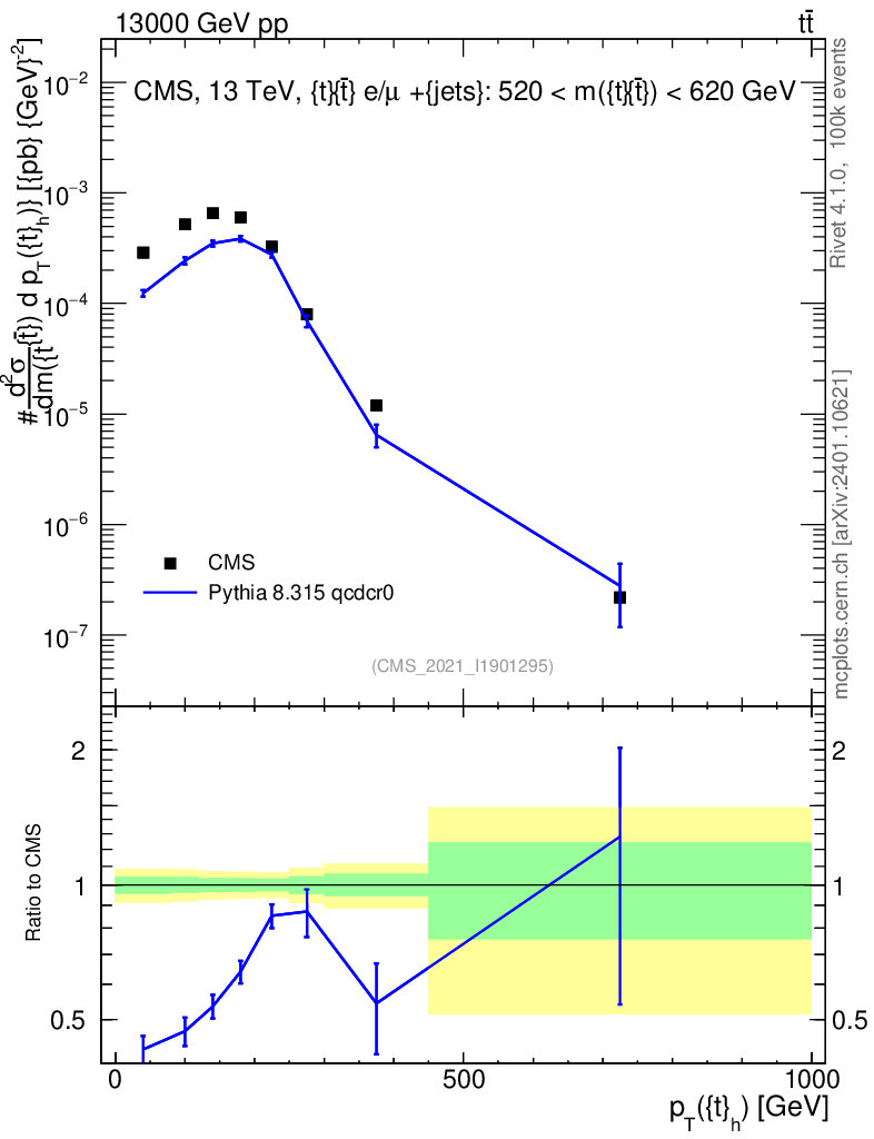 Lines: data, pythia8 8.315 qcdcr0 |