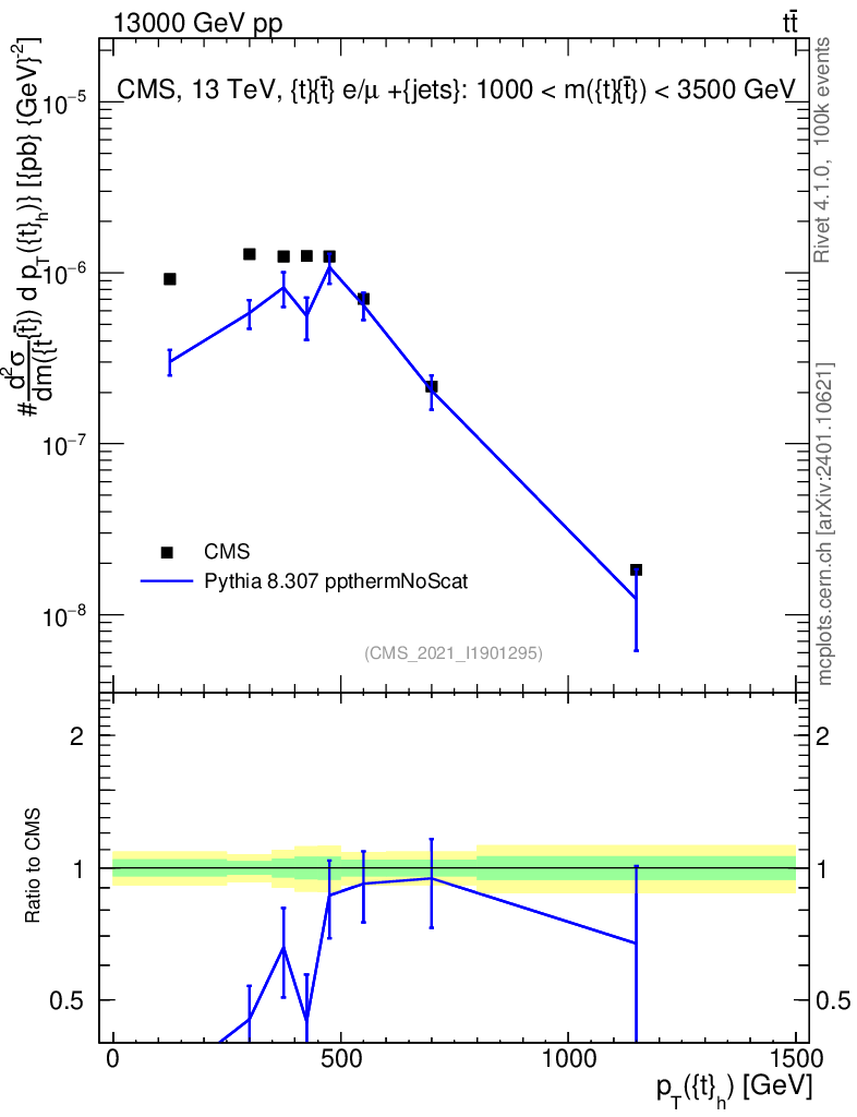 Lines: data, pythia8 8.307 ppthermNoScat |
