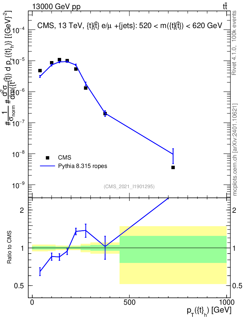 Lines: data, pythia8 8.315 ropes |