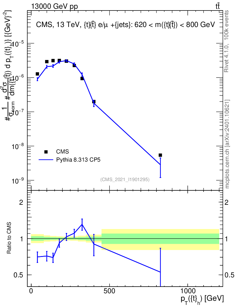 Lines: data, pythia8 8.313 CP5 |