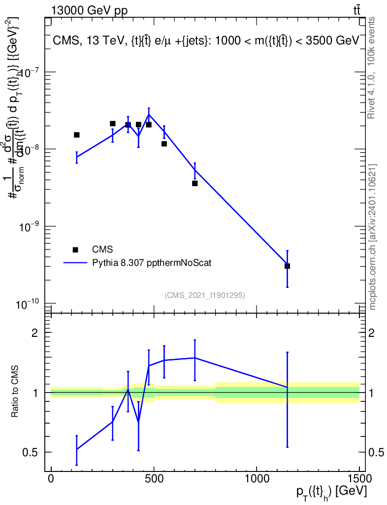 Lines: data, pythia8 8.307 ppthermNoScat |