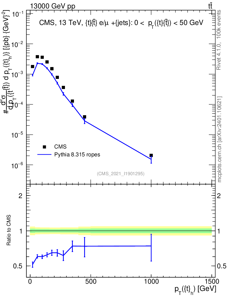 Lines: data, pythia8 8.315 ropes |