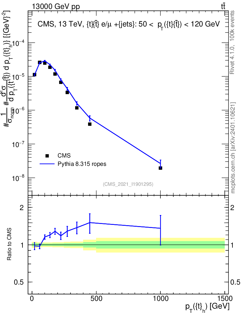 Lines: data, pythia8 8.315 ropes |