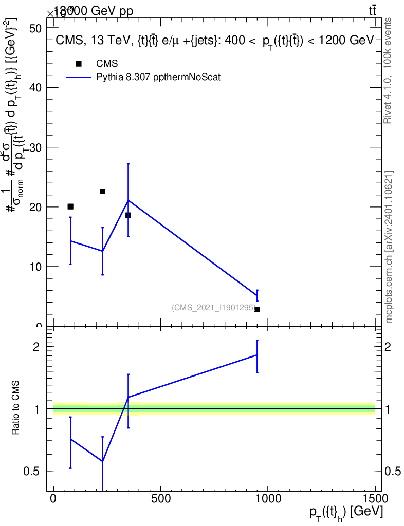 Lines: data, pythia8 8.307 ppthermNoScat |