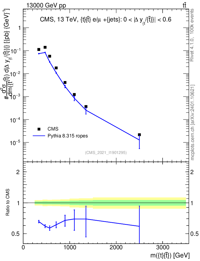 Lines: data, pythia8 8.315 ropes |