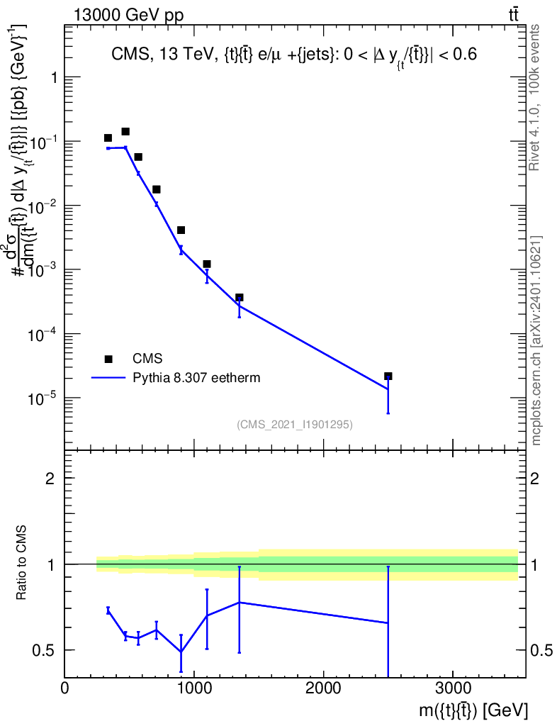 Lines: data, pythia8 8.307 eetherm |