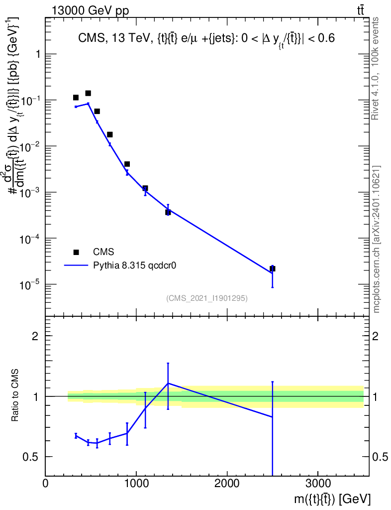 Lines: data, pythia8 8.315 qcdcr0 |