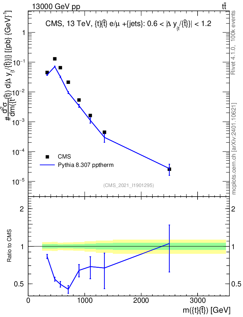 Lines: data, pythia8 8.307 pptherm |