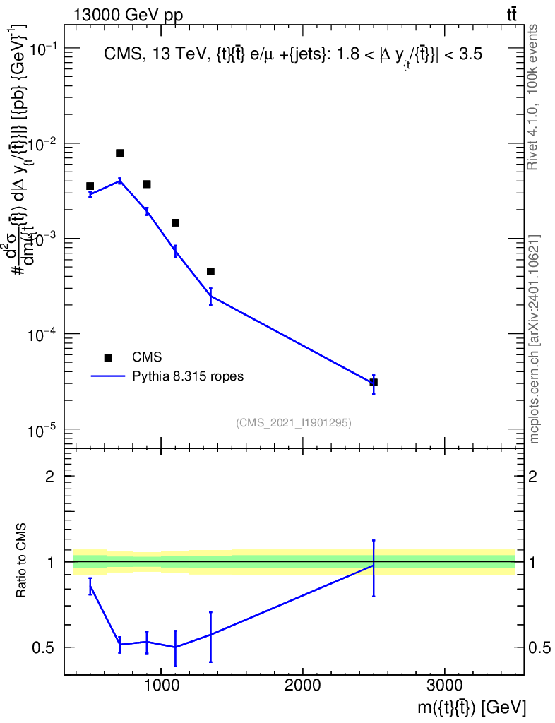 Lines: data, pythia8 8.315 ropes |