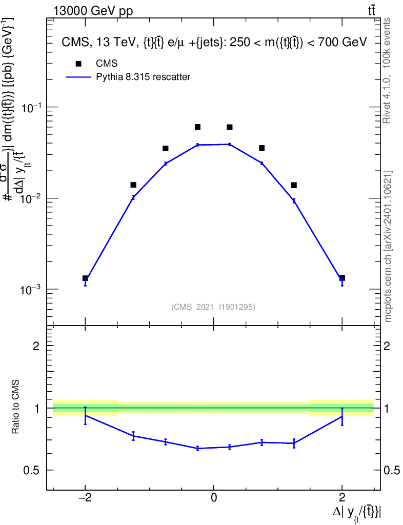 Lines: data, pythia8 8.315 rescatter |