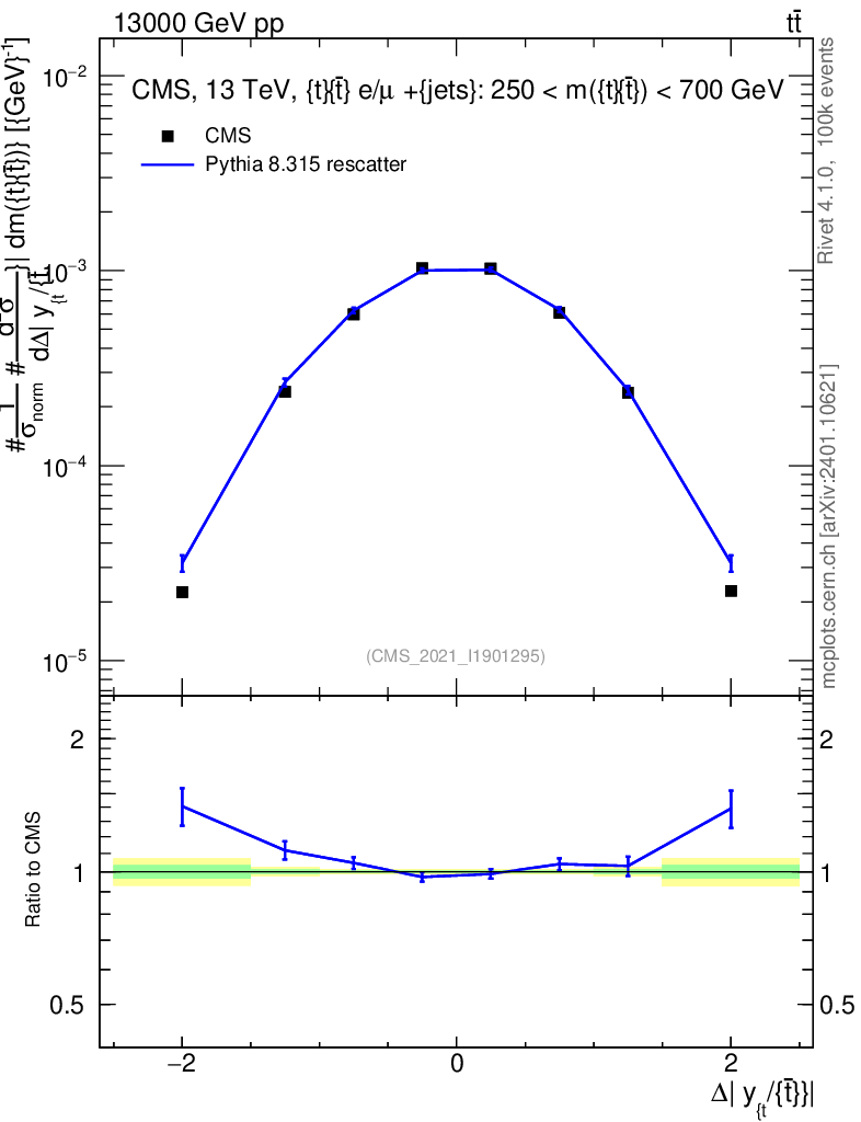 Lines: data, pythia8 8.315 rescatter |