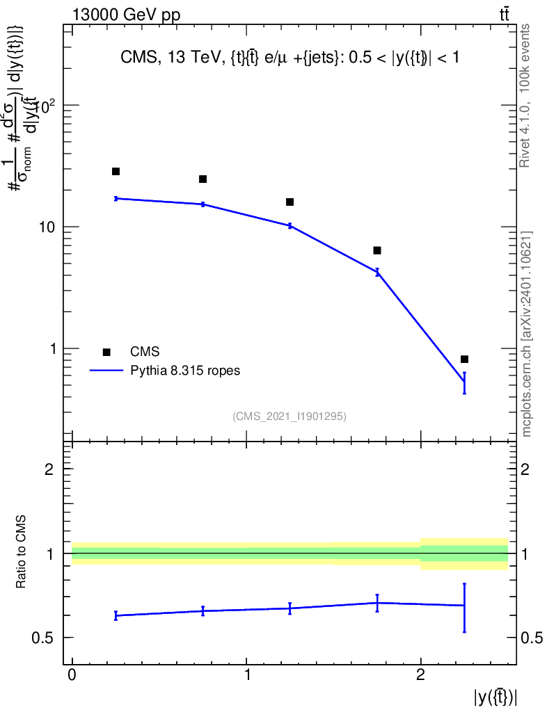 Lines: data, pythia8 8.315 ropes |