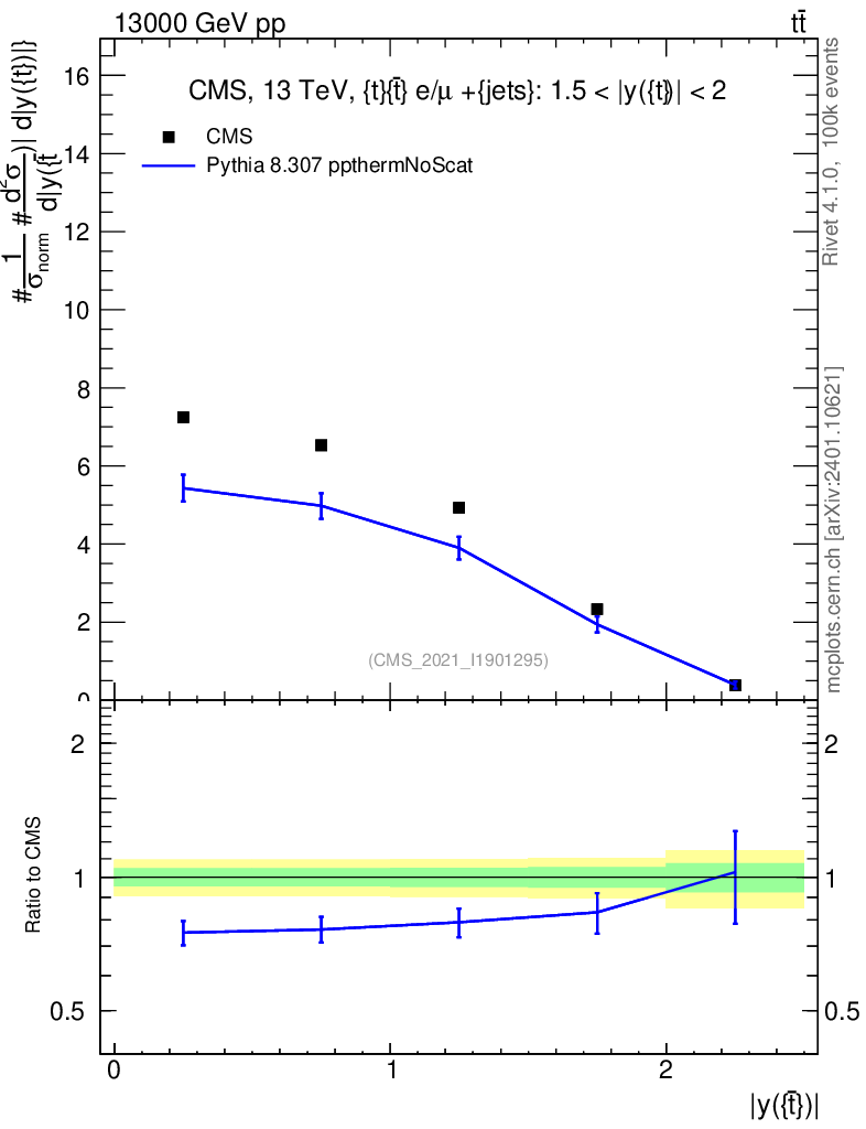 Lines: data, pythia8 8.307 ppthermNoScat |