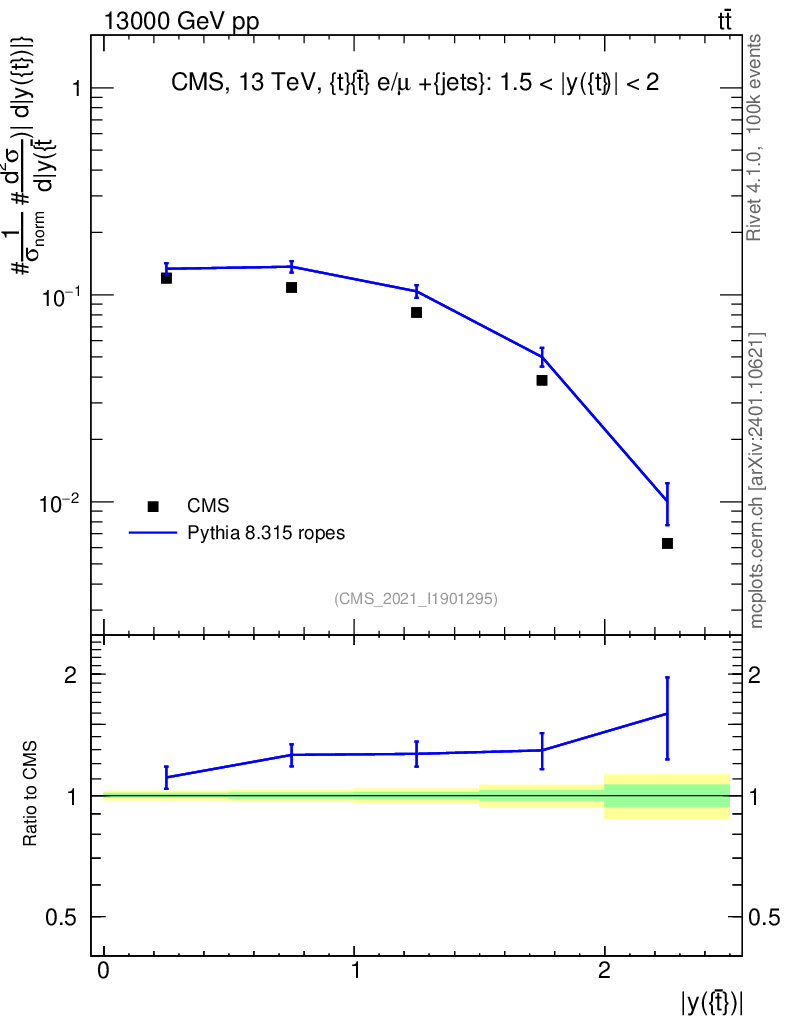 Lines: data, pythia8 8.315 ropes |