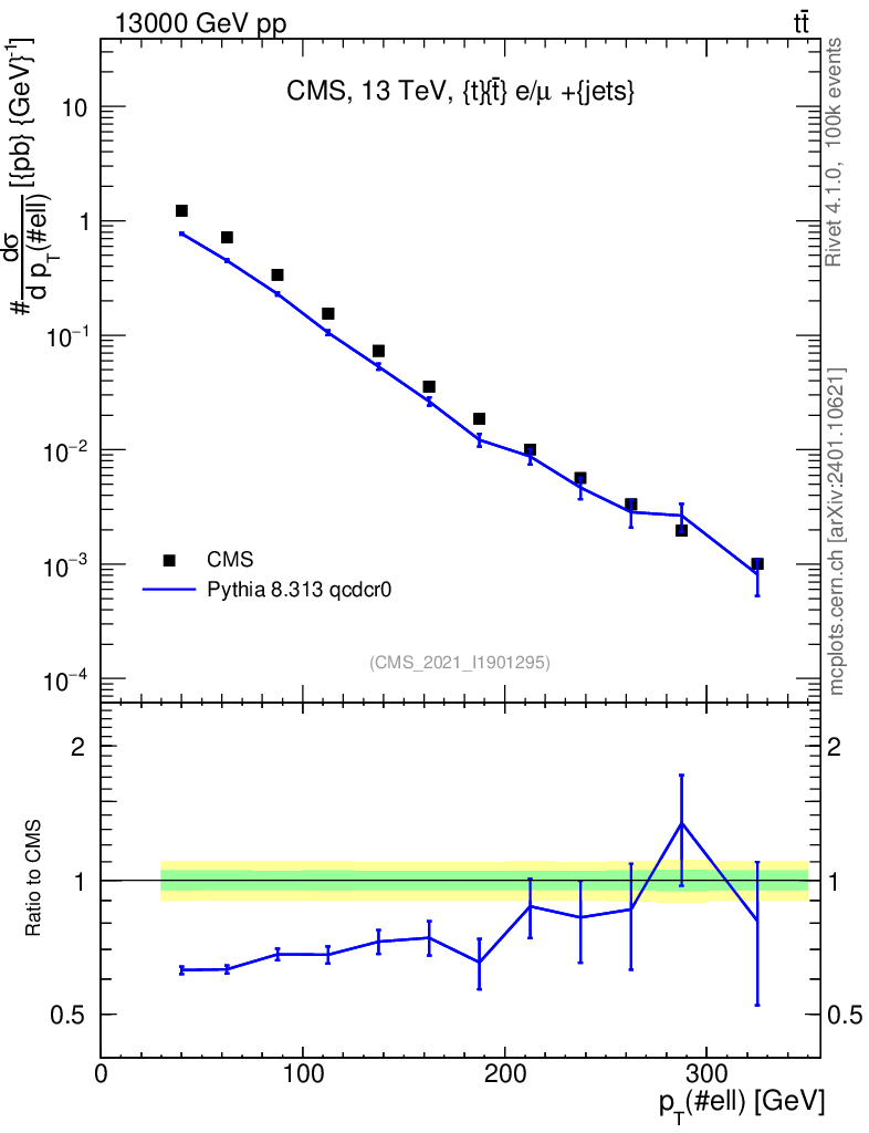 Lines: data, pythia8 8.313 qcdcr0 |