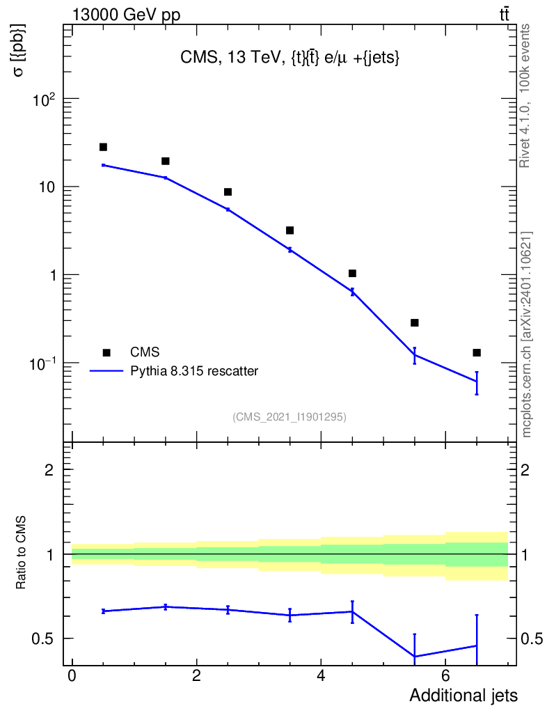 Lines: data, pythia8 8.315 rescatter |