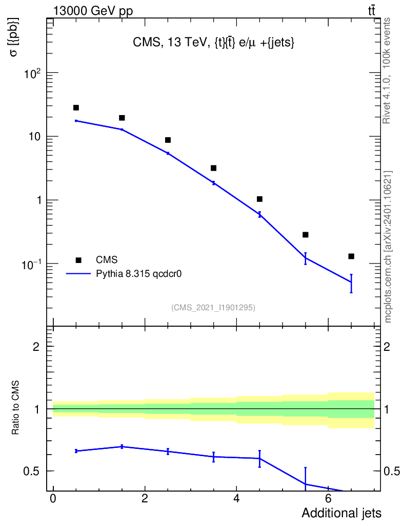 Lines: data, pythia8 8.315 qcdcr0 |