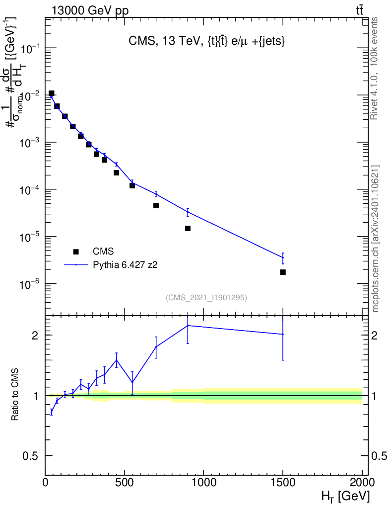 Lines: data, pythia6 6.427 z2 |
