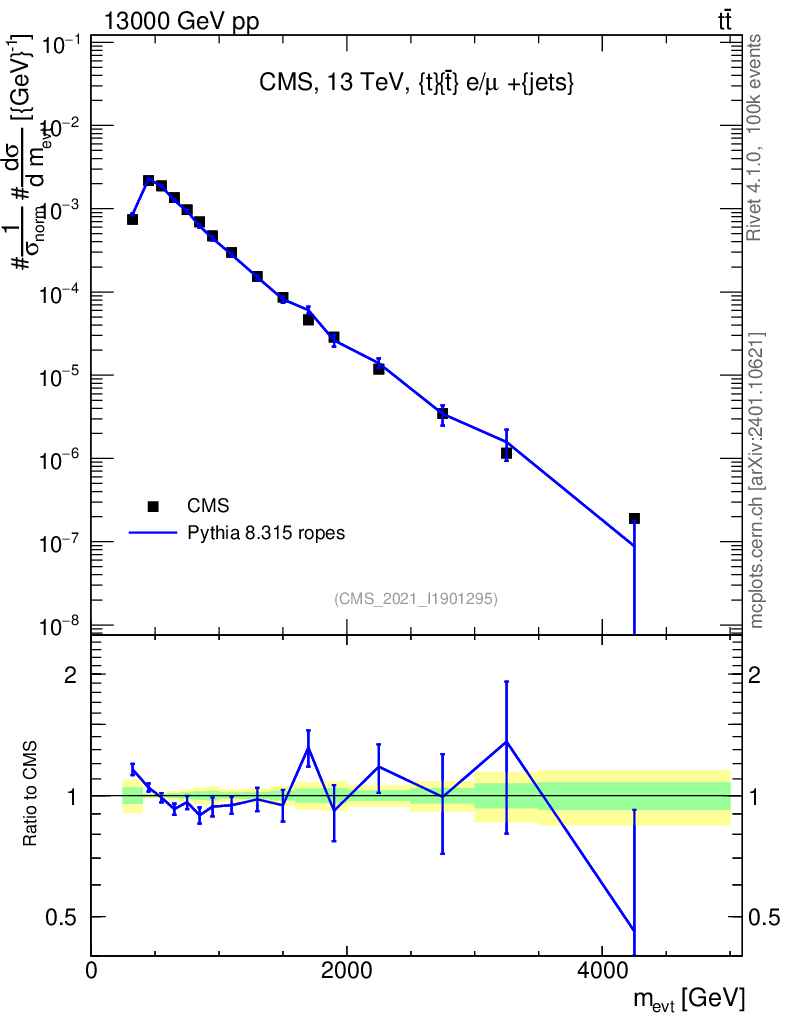 Lines: data, pythia8 8.315 ropes |