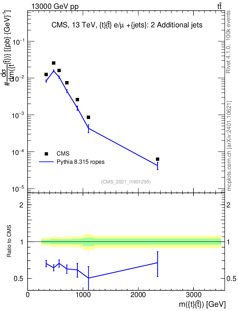 Lines: data, pythia8 8.315 ropes |
