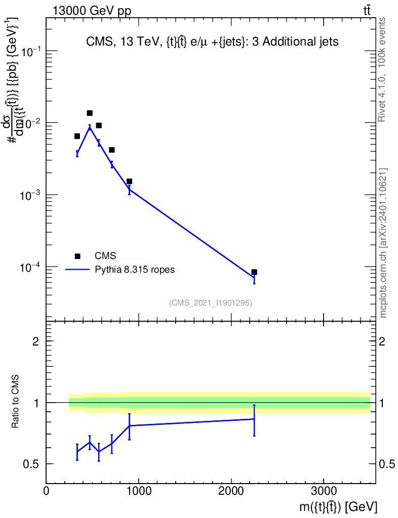 Lines: data, pythia8 8.315 ropes |