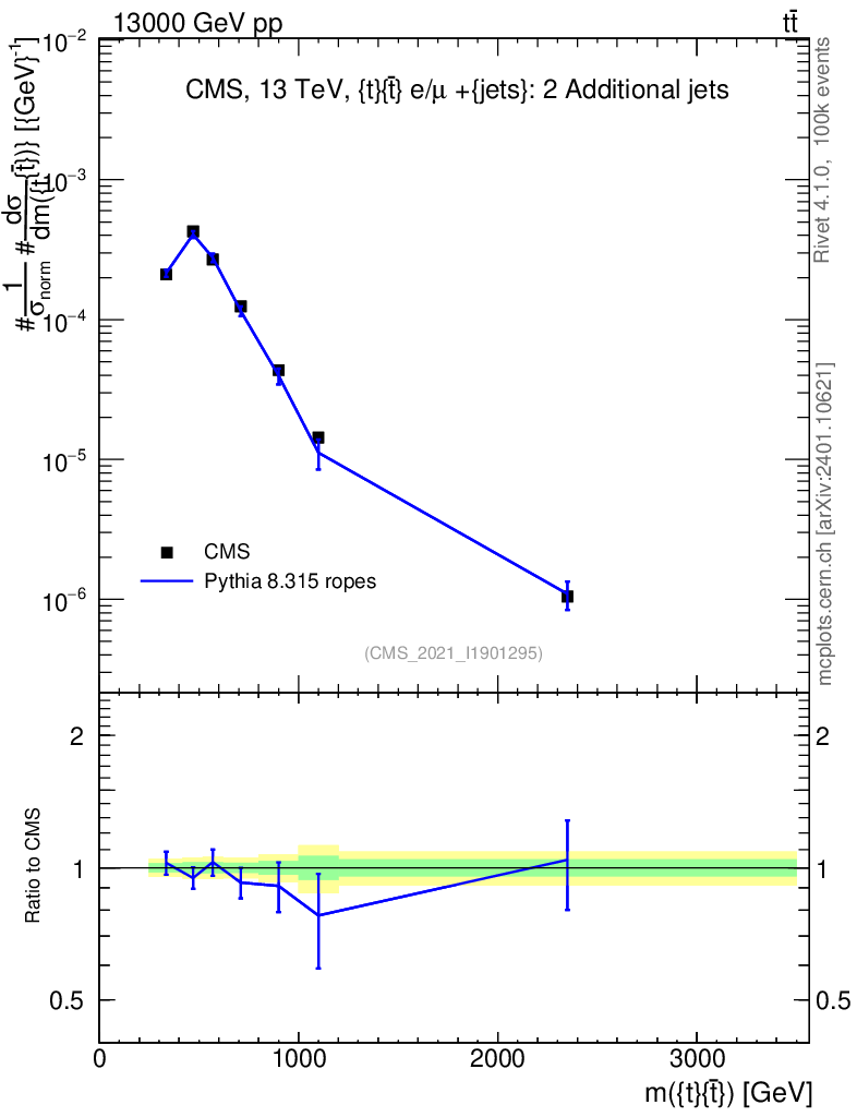 Lines: data, pythia8 8.315 ropes |